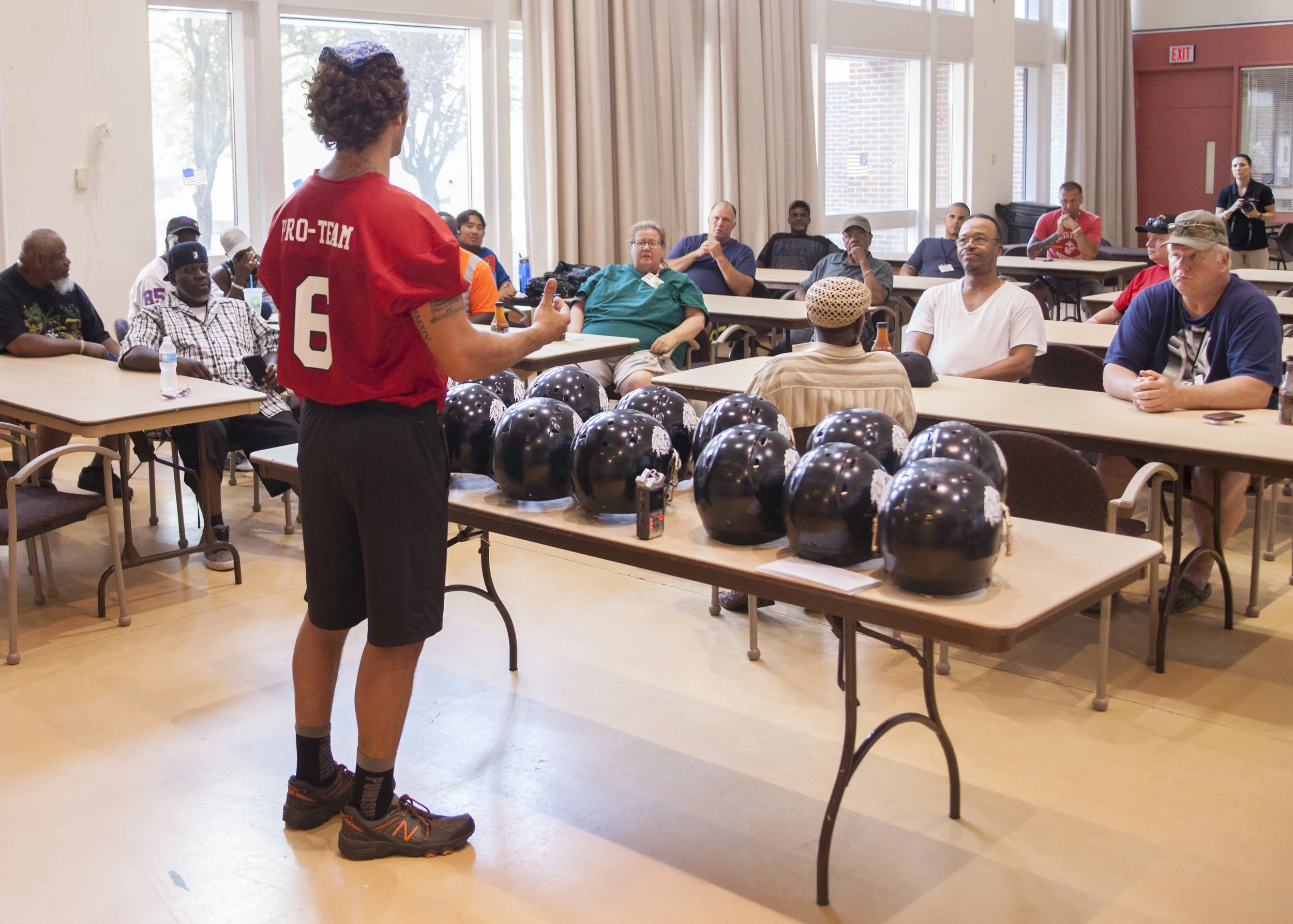 We bring our display only PFYF football helmets with us as symbols of hope for the Veterans. The helmets symbolize that we are here for them when they are ready to join us. They get them autographed by our NFL Alumni and PFYF staff. We have success stories of Veterans moving from hospital to hospital with their helmets. It warms my heart to hear and keeps us pushing forward.